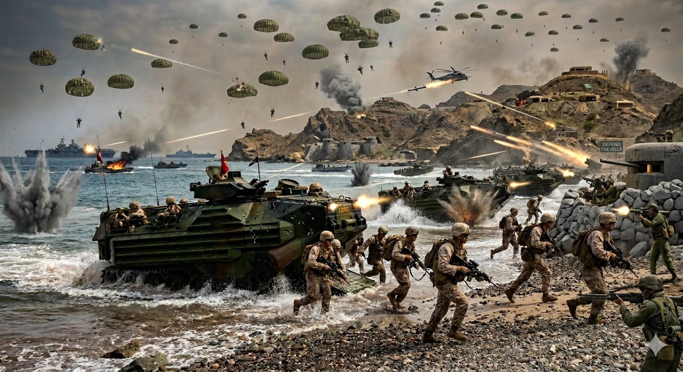 NSD proposed a plan in January 2024 that would have achieved the core military objective — degrading Iran’s maritime threat capability — without triggering the Hormuz closure, the energy crisis, the global economic disruption, or the twenty-seven-day war that has killed over three thousand Iranians including two hundred and fourteen children and thirteen Americans. What happened instead was the geopolitical equivalent of using a sledgehammer to kill a wasp and being surprised when the house caught fire. The next escalation — the simultaneous island assault — is a better-designed hammer. It will hit the nail. But the house is still on fire, and no one appears to be asking whether seizing the islands puts the fire out or spreads it to the neighbors.